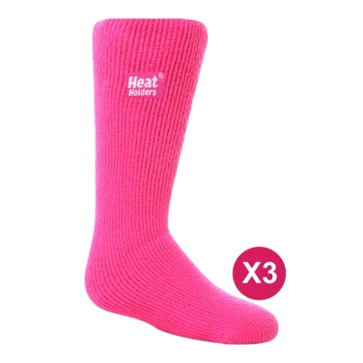 HEAT HOLDERS Kids Thermal Socks for Winter 3 Pair Mutlipack Boys & Girls Warm with Fluffy Fleece Inner (2 5, Hot Pink), 8 11 Years