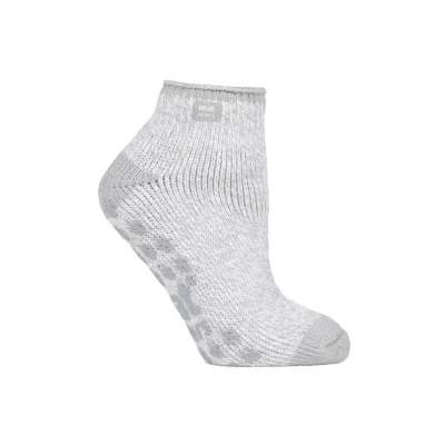 HEAT HOLDERS Ladies 2.3 tog thermal low cut non slip ankle slipper socks in 4 colours size 8 uk (4 UK, Light Grey Cream)