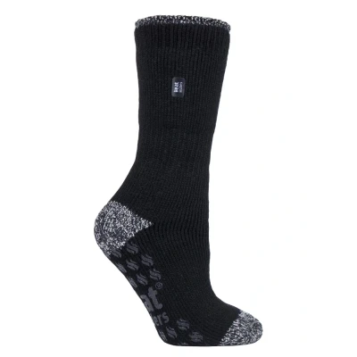HEAT HOLDERS Ladies ABS Non Skid Thermal Slipper Socks with Grips for Indoor Winter Comfort (4 8 UK, Black)