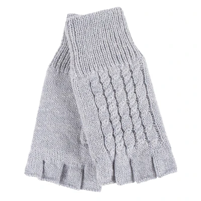 HEAT HOLDERS Ladies Cable Knitted Winter Thermal Fingerless Gloves (One Size, Light Grey)