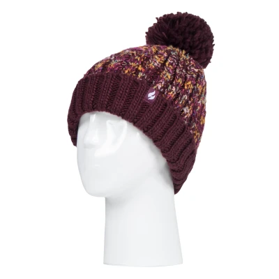 HEAT HOLDERS Ladies Chunky Thermal Winter Fashion Bobble Hat with Extra Large Pom (One Size, Wine)