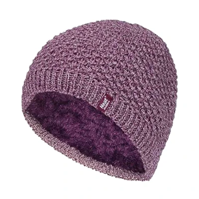 HEAT HOLDERS Ladies Crochet Knit Style Fleece Lined Warm Thermal Winter Beanie Hat (One Size, Rose (Nora))