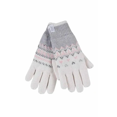 HEAT HOLDERS Ladies Cute Striped Fairisle Warm Knitted Fleece Lined Winter Thermal Gloves (M/L, Cream (Trondheim))