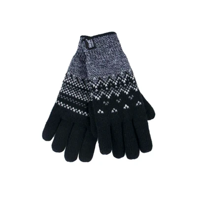 HEAT HOLDERS Ladies Cute Striped Fairisle Warm Knitted Fleece Lined Winter Thermal Gloves (M/L, Black (Trondheim))