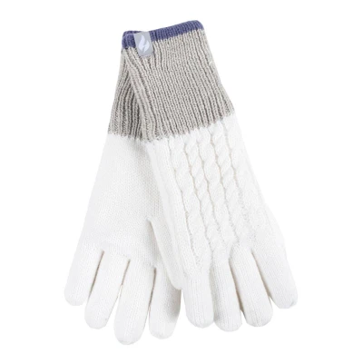 HEAT HOLDERS Ladies Cute Striped Fairisle Warm Knitted Fleece Lined Winter Thermal Gloves (S/M, Cream (Kisdon))