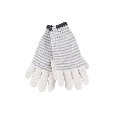 HEAT HOLDERS Ladies Cute Striped Fairisle Warm Knitted Fleece Lined Winter Thermal Gloves (S/M, Cream (Oslo))