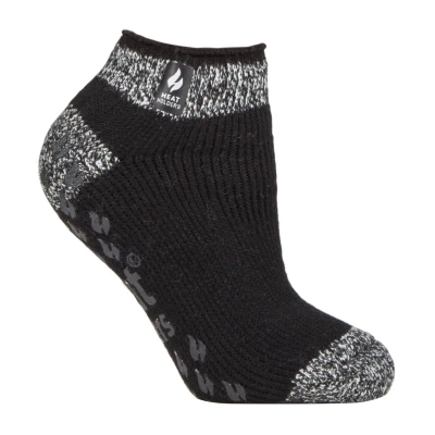 HEAT HOLDERS Ladies Low Cut Ankle Slipper Socks with Non Slip Rubber Sole (4 7, Black (Pisa))