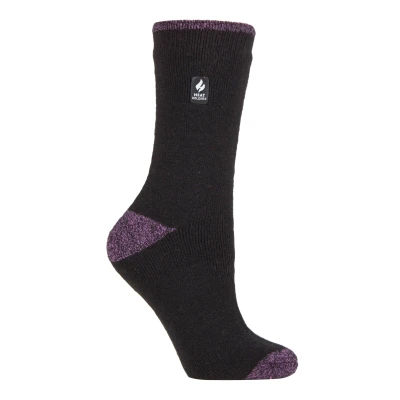 HEAT HOLDERS Ladies Patterened Warm Winter Fleck Striped Twist Thermal Socks in 10 colours, size 4 8 UK 37 42 eur (Black/Purple H&T)
