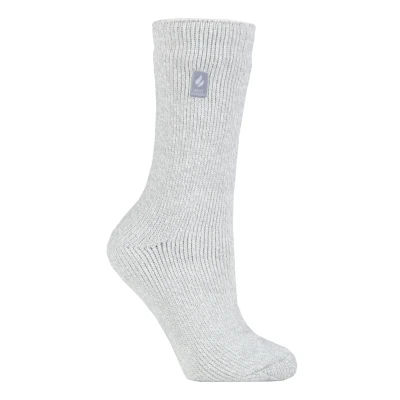 HEAT HOLDERS Ladies Patterened Warm Winter Fleck Striped Twist Thermal Socks in 10 colours, size 4 8 UK 37 42 eur (Silver Grey)