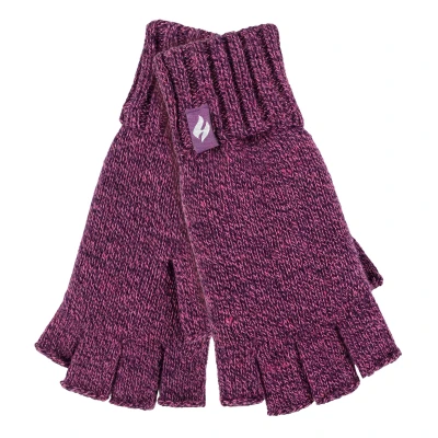 HEAT HOLDERS Ladies Solid Knitted Fingerless Gloves Ideal for Smartphone Keeps Hands Warm in Winter (One Size, Purple Twist)