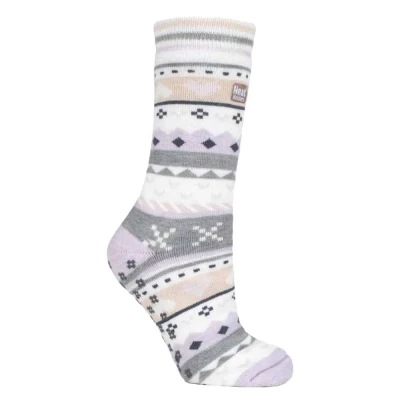 HEAT HOLDERS Ladies Soul Warming Thick Cosy Fairisle Nordic Winter Non Slip Thermal Slipper Socks with Grippers (4 8 uk, Lilac/Grey (Soul))