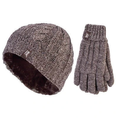 HEAT HOLDERS Ladies Thermal Winter Outdoor Fleece Insulated Hat and Gloves Set in 7 Colours (M/L, Black) Fawn)