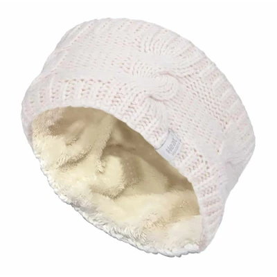 Heat Holders Ladies Thick Cable Knitted Fleece Lined Thermal Winter Empty Skull Ear Warmer Headband (One Size, Cream)