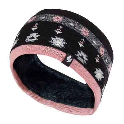 Heat Holders Ladies Thick Cable Knitted Fleece Lined Thermal Winter Empty Skull Ear Warmer Headband (One Size, Jaquard Black Coral)