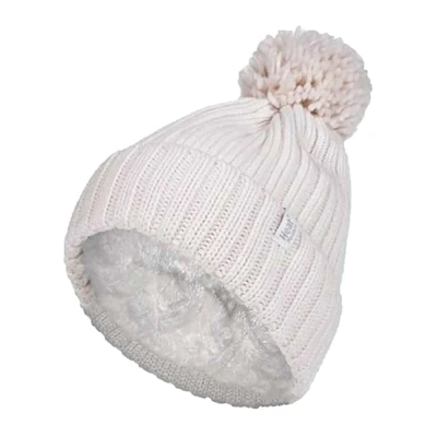 HEAT HOLDERS Ladies Thick Chunky Ribbed Cuffed Thermal Insulated Winter Pom Bobble Hat (One Size, Cream (Arden))