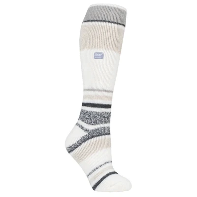 HEAT HOLDERS Ladies Thick Extra Long Striped 2.3 TOG Winter Thermal Knee High Ski Socks (4 8, Cream Stripe)