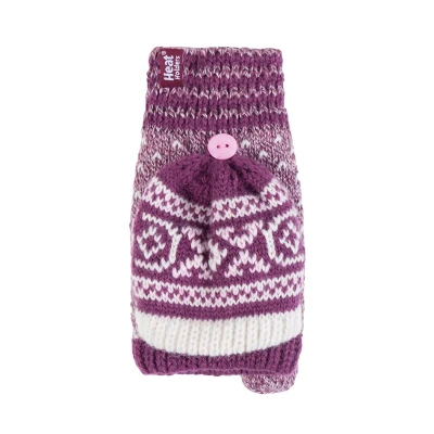 HEAT HOLDERS Ladies Warm Fairisle Patterned Thermal Fingerless Winter Mittens Converter Gloves (One Size, Rose (Stockholm))