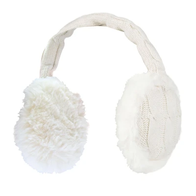HEAT HOLDERS Ladies Winter Warm Knitted Ear Muffs Faux Fur Cold Weather (One Size, Cream)