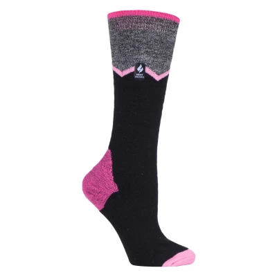 HEAT HOLDERS LITE Ladies Thermal Ultra Thin Funky Ski Socks Knee High Length with Padded Heel & Toe (4 8 UK, Black Zig Zag)