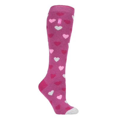 HEAT HOLDERS Lite Ladies Thin Extra Long Knee High 1.6 TOG Patterned Winter Warm Thermal Socks (4 8 UK, Pink Heart)