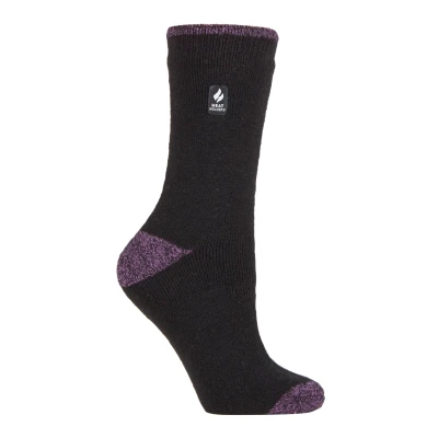 HEAT HOLDERS Lite Womens Insulated Thermal Socks Multiple Designs Including Argyle Stripes Hearts Stars Warm for Winter (4 7, Black/Purple H&T (Tenerife))