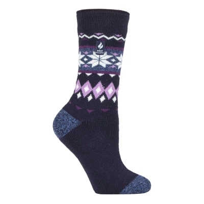 HEAT HOLDERS Lite Womens Insulated Thermal Socks Multiple Designs Including Argyle Stripes Hearts Stars Warm for Winter (4 7, Denim (Lima))