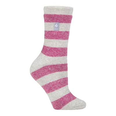 HEAT HOLDERS Lite Womens Insulated Thermal Socks Multiple Designs Including Argyle Stripes Hearts Stars Warm for Winter (4 7, Light Grey/Berry (Bologna))
