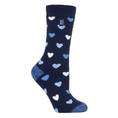 HEAT HOLDERS Lite Womens Insulated Thermal Socks Multiple Designs Including Argyle Stripes Hearts Stars Warm for Winter (4 7, Navy Heart (Jasmine))