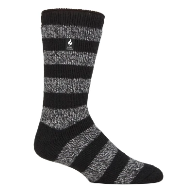 Don't let the cold weather get you down. Layer up with these warm Men's Ultimate Thermal Socks by Heat Holders. Scientifically tested to be the warmest socks available, Heat Holders socks are created by UK PATENTED knitting technology. This unique manufacturing process together with Heat Holders® innovative Japanese designed thermal yarn, ensures maximum warmth is held close to the skin. Designed with a high tog rating of 2.3 TOG, these socks will keep your feet warmer for longer periods of time. Keep feet warm with Heat Holders advanced Japanese designed thermal yarn properties which provide high-performance insulation against the cold. They also contain superior moisture breathing abilities and softness. Heat Holders innovative knitting technology produces UK PATENTED long looped cushion pile to hold more warm air, increasing the overall TOG rating. Their expert brushing process maximises the amount of warm air held inside each sock for unbeatable warmth and all-day comfort. The ultimate thermal socks for everyday casual wear has arrived with these colourful, striped, and thick socks. Whether you're wearing them in bed, or around the home, these men's socks are guaranteed to keep your feet warm and toasty! They offer a snug, tight feel whilst retaining heat close to the skin. Available in a range of colours and styles, choose from striped patterns, or colourful toe and heel designs to suit your fashionable needs! They come in men's sizes 6-11 UK, 39-45 EU, 7-12 US..