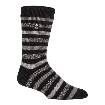 Don't let the cold weather get you down. Layer up with these warm Men's Ultimate Thermal Socks by Heat Holders. Scientifically tested to be the warmest socks available, Heat Holders socks are created by UK PATENTED knitting technology. This unique manufacturing process together with Heat Holders® innovative Japanese designed thermal yarn, ensures maximum warmth is held close to the skin. Designed with a high tog rating of 2.3 TOG, these socks will keep your feet warmer for longer periods of time. Keep feet warm with Heat Holders advanced Japanese designed thermal yarn properties which provide high-performance insulation against the cold. They also contain superior moisture breathing abilities and softness. Heat Holders innovative knitting technology produces UK PATENTED long looped cushion pile to hold more warm air, increasing the overall TOG rating. Their expert brushing process maximises the amount of warm air held inside each sock for unbeatable warmth and all-day comfort. The ultimate thermal socks for everyday casual wear has arrived with these colourful, striped, and thick socks. Whether you're wearing them in bed, or around the home, these men's socks are guaranteed to keep your feet warm and toasty! They offer a snug, tight feel whilst retaining heat close to the skin. Available in a range of colours and styles, choose from striped patterns, or colourful toe and heel designs to suit your fashionable needs! They come in men's sizes 6-11 UK, 39-45 EU, 7-12 US..