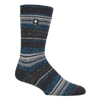 Don't let the cold weather get you down. Layer up with these warm Men's Ultimate Thermal Socks by Heat Holders. Scientifically tested to be the warmest socks available, Heat Holders socks are created by UK PATENTED knitting technology. This unique manufacturing process together with Heat Holders® innovative Japanese designed thermal yarn, ensures maximum warmth is held close to the skin. Designed with a high tog rating of 2.3 TOG, these socks will keep your feet warmer for longer periods of time. Keep feet warm with Heat Holders advanced Japanese designed thermal yarn properties which provide high-performance insulation against the cold. They also contain superior moisture breathing abilities and softness. Heat Holders innovative knitting technology produces UK PATENTED long looped cushion pile to hold more warm air, increasing the overall TOG rating. Their expert brushing process maximises the amount of warm air held inside each sock for unbeatable warmth and all-day comfort. The ultimate thermal socks for everyday casual wear has arrived with these colourful, striped, and thick socks. Whether you're wearing them in bed, or around the home, these men's socks are guaranteed to keep your feet warm and toasty! They offer a snug, tight feel whilst retaining heat close to the skin. Available in a range of colours and styles, choose from striped patterns, or colourful toe and heel designs to suit your fashionable needs! They come in men's sizes 6-11 UK, 39-45 EU, 7-12 US..
