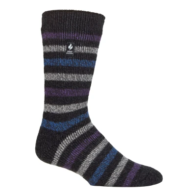 Don't let the cold weather get you down. Layer up with these warm Men's Ultimate Thermal Socks by Heat Holders. Scientifically tested to be the warmest socks available, Heat Holders socks are created by UK PATENTED knitting technology. This unique manufacturing process together with Heat Holders® innovative Japanese designed thermal yarn, ensures maximum warmth is held close to the skin. Designed with a high tog rating of 2.3 TOG, these socks will keep your feet warmer for longer periods of time. Keep feet warm with Heat Holders advanced Japanese designed thermal yarn properties which provide high-performance insulation against the cold. They also contain superior moisture breathing abilities and softness. Heat Holders innovative knitting technology produces UK PATENTED long looped cushion pile to hold more warm air, increasing the overall TOG rating. Their expert brushing process maximises the amount of warm air held inside each sock for unbeatable warmth and all-day comfort. The ultimate thermal socks for everyday casual wear has arrived with these colourful, striped, and thick socks. Whether you're wearing them in bed, or around the home, these men's socks are guaranteed to keep your feet warm and toasty! They offer a snug, tight feel whilst retaining heat close to the skin. Available in a range of colours and styles, choose from striped patterns, or colourful toe and heel designs to suit your fashionable needs! They come in men's sizes 6-11 UK, 39-45 EU, 7-12 US..