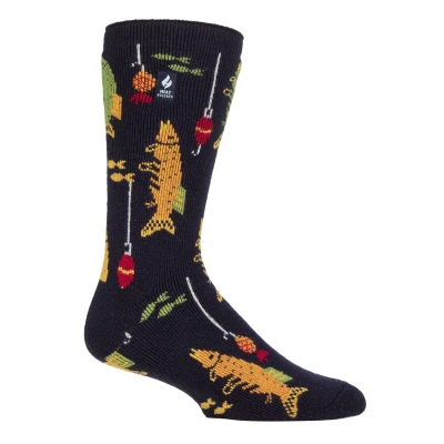 HEAT HOLDERS Mens Fun Hobby Socks Lite Novelty Fluffy Fleece Lined Thermal for Winter (UK, Numeric, 6, 11, Regular, Fishing)