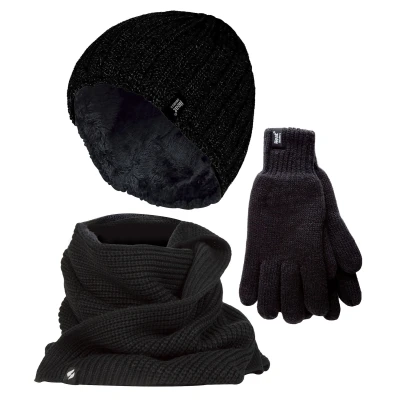 HEAT HOLDERS Mens Knitted Beanie Hat Scarf Gloves Set Luxury Soft Fleece Lined Winter for Cold Weather (S M, Black)