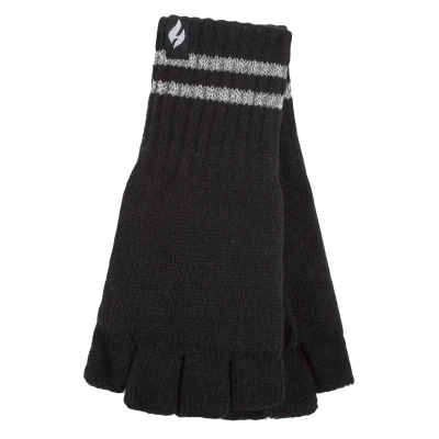 HEAT HOLDERS Mens Knitted Fingerless Reflective Gloves for Winter Thermal Hi Viz Work (One Size, Black)