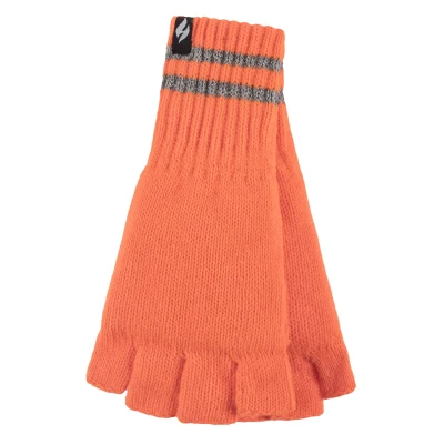 HEAT HOLDERS Mens Knitted Fingerless Reflective Gloves for Winter Thermal Hi Viz Work (One Size, Orange)