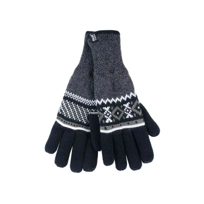 HEAT HOLDERS Mens Striped Nordic Fairisle Zig Zag Knitted Fleece Lined Thermal Winter Warm Gloves (L/XL, Black (Karlstad))