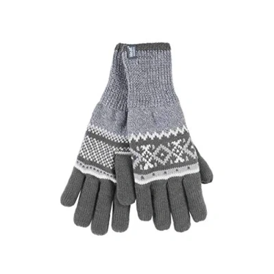 HEAT HOLDERS Mens Striped Nordic Fairisle Zig Zag Knitted Fleece Lined Thermal Winter Warm Gloves (S/M, Grey (Karlstad))