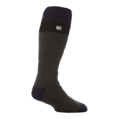 HEAT HOLDERS Mens Thick Extra Long Striped 2.3 TOG Winter Thermal Knee High Ski Socks (6 11 uk, Grey/Black)