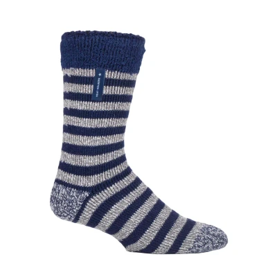 HEAT HOLDERS Mens Warm Luxury Fluffy Fleece Lined Lounge Sleep Bed Socks (6 11 UK, Navy Stripe (Lumi))
