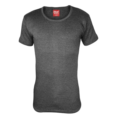 HEAT HOLDERS Mens Winter Warm Cotton Thermal Underwear Short Sleeve T Shirt Vest (Large (41 43" Chest), Charcoal)