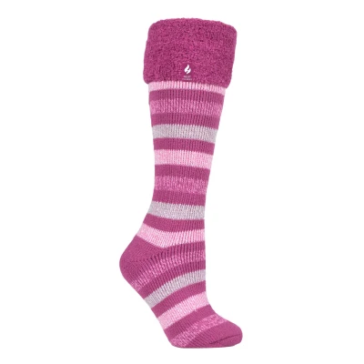 HEAT HOLDERS SOCKSHOP Ladies 2.3 TOG Hellebore Cosy Cuff Wellington Boot Socks 4 8 Pink Stripe