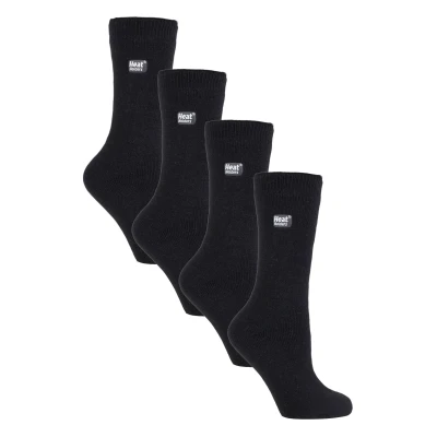 HEAT HOLDERS Ultra Lite 4 Pair Multipack Ladies Thermal Socks Thin Warm for Dress in Winter (4 8, Black)