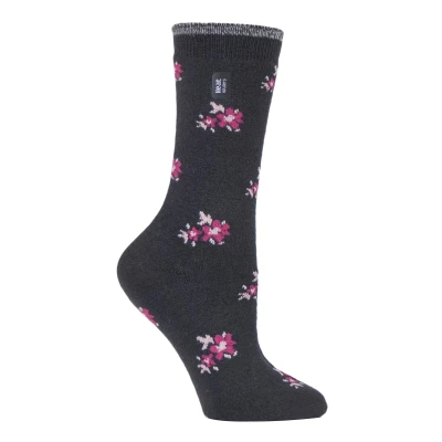 HEAT HOLDERS Ultra Lite Ladies Thin Lightweight 1.0 TOG Winter Warm Casual Thermal Dress Socks (4 8 uk, Bellis Charcoal Floral)