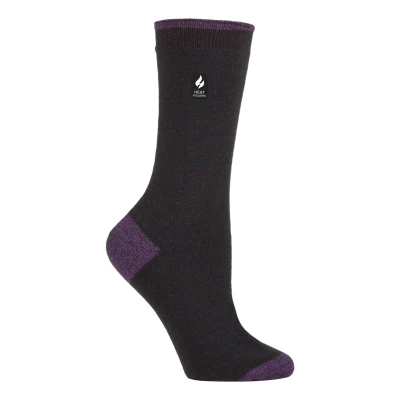 HEAT HOLDERS Ultra Lite Ladies Thin Lightweight 1.0 TOG Winter Warm Casual Thermal Dress Socks (4 8 uk, Black/Purple (Oia))