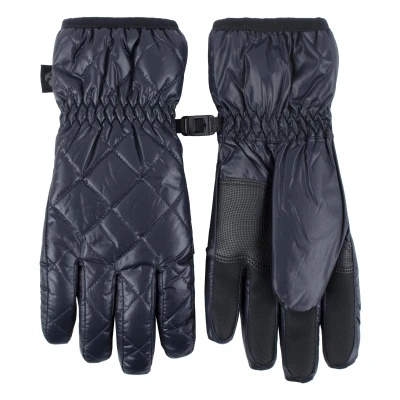 These Heat Holders quilted touch screen gloves are both wind and water resistant and feature a dual insulation system. The plush fur-like HeatWeaver lining provides soft comfort and maximizes the amount of warm air that is held close to your hands. The Thinsulate insulation provides extra warmth and breathability. The feature elasticated cuffs and palm grips improve fit and durability. Touch screen fingertips allow use of touch screen devices. These gloves are wind and water resistant, to provide that extra level of comfort and convenience. They also have palm grips and touch screen fingertips to increase protection in your grip hold. These gloves are made from 100% polyester and are hand wash only.