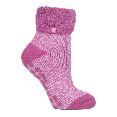 HEAT HOLDERS Womens Fluffy Turnover Cuff Thermal Ankle Slipper Lounge Bed Socks with Non Slip Grips (4 8 uk, 37 42 eur, HHL16)