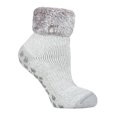 Heat Holders Womens Ladies Non Slip Thermal Low Cut Fluffy Slipper Socks Silver Size UK 4 6.5
