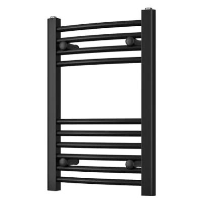 Heated Curved Black Towel Rail For Luxurious Bathrooms Efficient Warmer & Storage Rack Bathroom Radiator with Stylish Holder Easy Installation H600mm x W400mm