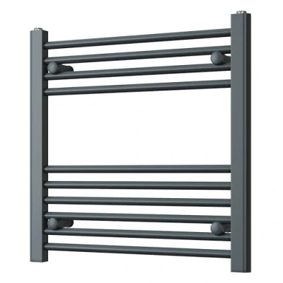 Heated Straight Anthracite Towel Rail For Luxurious Bathrooms Efficient Warmer & Storage Rack Bathroom Radiator with Stylish Holder Easy Installation H600mm x W600mm